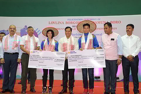 आसामनि गिबि मन्थ्रि सर्बानन्द सन'वाल बिथांआ हादोरनि जानानै मुलुगनां थाखोयाव आयजो बक्सिं सेम्पियनसिप बादायलायनायाव बाहागो लाहैनानै हादोरखौ गोग्गानाय आरो रंजानाय लाबोनो हानाय आसामनि सानै ब्रन्ज नि बान्था आवथेनो हानाय फिसाजो जमुना बर' आरो लाभलिना बरगहाइखौ हादोरसा गेलेमुं बिथांखि (State Sports Policy) नि सिङाव गुवाहाटी नोगोरमानि सरुसजाइ कर्मबिर नबिन चन्द्र बरदलै इन्दुर ष्टेडियामआव 20 लाख रांयै बान्थाजों दुंब्रुदयै मान बावहरो।