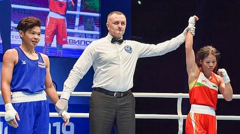 बेनि अनगायैबो सेमि फाइनेलनि मासियाव सोहैनाय लोगो-लोगोनो भारतनि मुंदांखा आयजो गेलेगिरि मेरि कमनि गुबुन मोनसे मुलुग रेकर्ड नि सिनायथि। मुलुगनां थाखोनि सेम्पियनसिपनि जारिमिनाव गासै मोन दाइन बान्था आवग्रिनानै हादोर जों सा-सानजाखौ गोग्गाहोनो हानाय मनिपुरनि फिसाजो मेरिकमआ गिबि बक्सार गेलेगिरि महरै गायसननो हाबाय।
