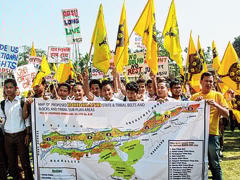 क’कराझार,नवेम्बर 20: “बिटिचीखौ दाफामफिन्नानै इउटिची दाफुंनो नागिरनायाव अबर’ सुराक्सा समिटि, आक्रासु आरो आमसुनि 24 घन्टा आसाम बन्द’ होनाया आयेन बेरेखा मानोना बिटिचीखौ दाफामफिन्नाया संबिजिरनि बादियैसो ट्रायबेल सुबुंफोरखौ रैखाथि होनो नागिरदों” होन्ना बड’लैन्ड जनजाति सुराक्सा मन्चनि (BJSM) गाहाय आफादगिरि जनकलाल बसुमथारि बिथांआ बुङो